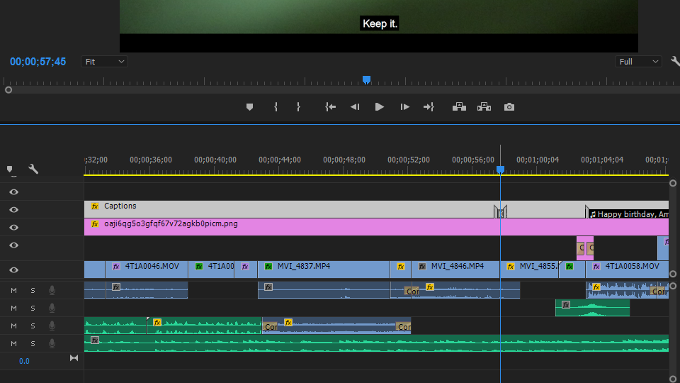 As the first scene is over and we begin to move towards the second scene where Ammar asks Esha for water, I used ‘constant power’ which is the default audio transition in Adobe Premiere Pro. This transition creates the effect of the first audio fading out by its end and the next audio fading. Thus, the dish washing sounds fade out and Ammar’s racecar gaming audio fades in. Here, I downloaded and imported a sad piano music from YouTube by using y2mate.com. which also begins to fade in at the same time as the racecar gaming audio.
